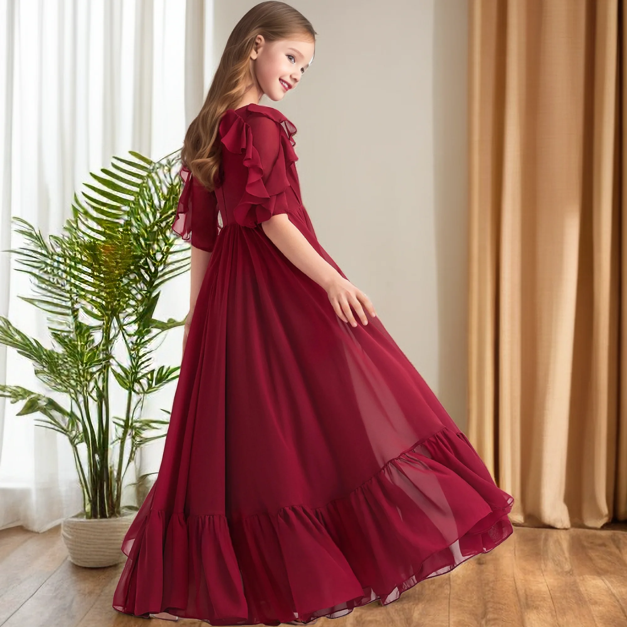 Floor-Length Chiffon For Children Wedding Pageant Graduation Birthday Party Event Ball-Gown Festivity Celebration Banquet Prom