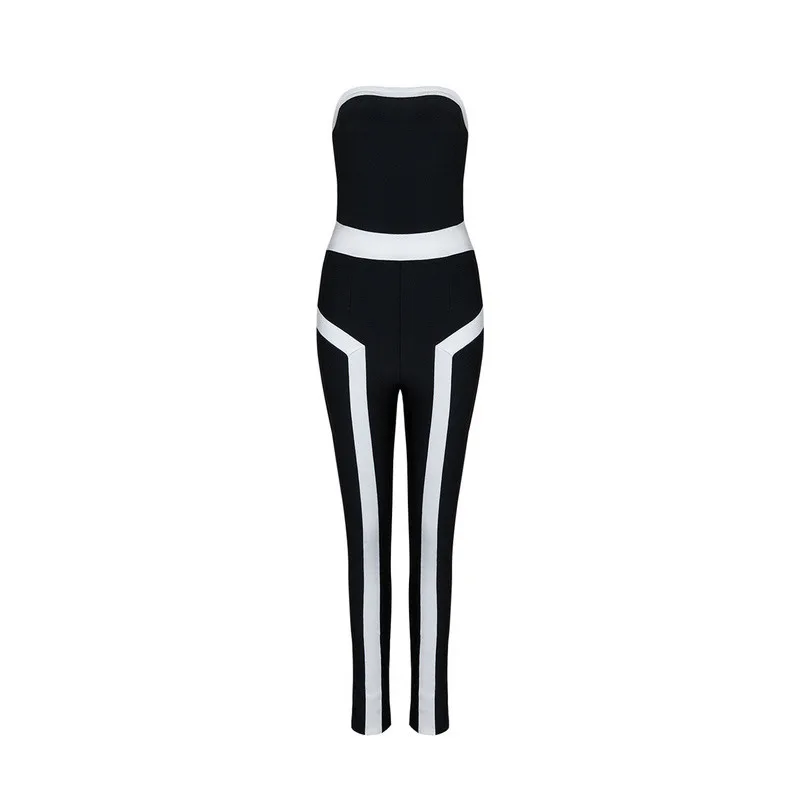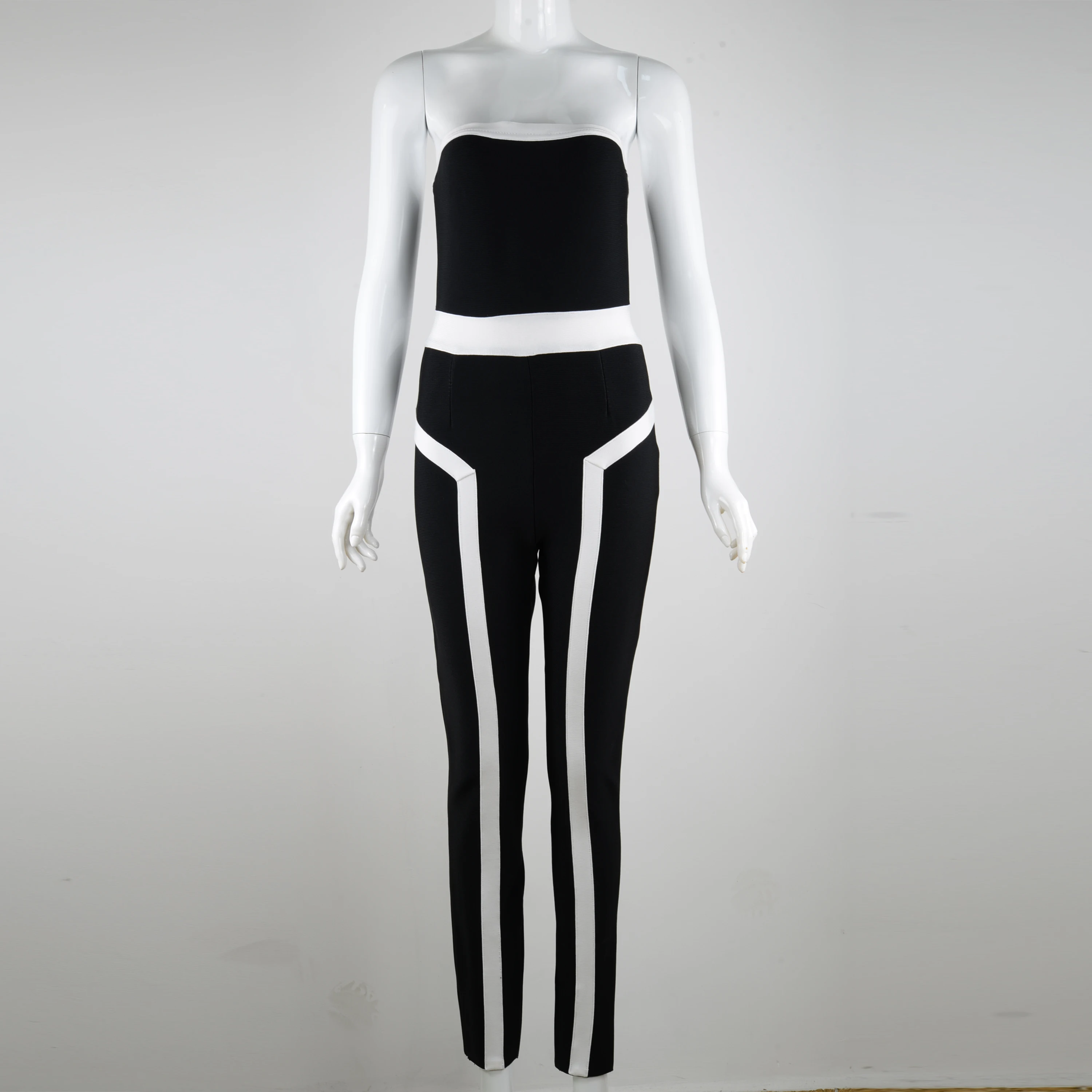 Streetwear Black Knitted Sexy Strapless Bodycon Jumpsuit Women Overalls 2022 Long Bodycon Skinny Rompers Bandage Jumpsuit Female
